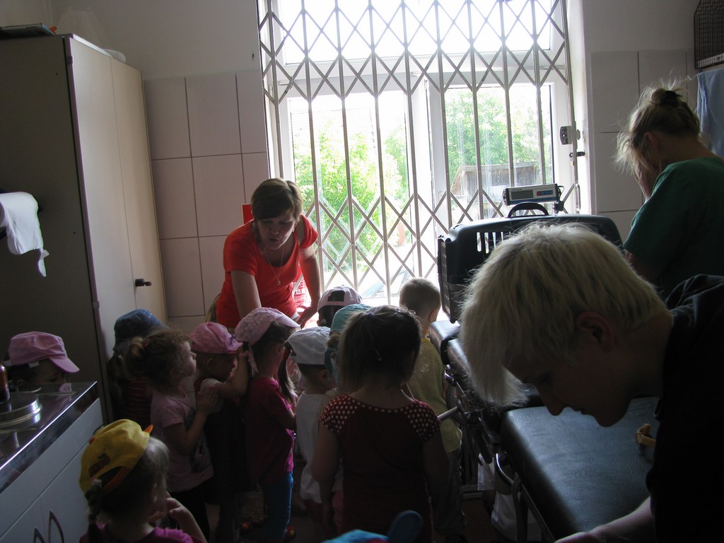Przedszkolaki dokładnie obejrzały gabinet weterynaryjny, dowiedziały się na czym polega praca weterynarza. Lekarz weterynarii, Pani Magdalena Mikoś , opowiedziała o sposobie pielęgnacji zwierząt domowych, a także jak należy się zachować podczas kontaktu z niebezpiecznym zwierzęciem. Dzieci poznały narzędzia medyczne potrzebne do badania zwierząt. Z wielkim zaciekawieniem oglądały wszystkie pomieszczenia oraz zobaczyły leczone zwierzęta znajdujące się w gabinecie – pieski i kota.
